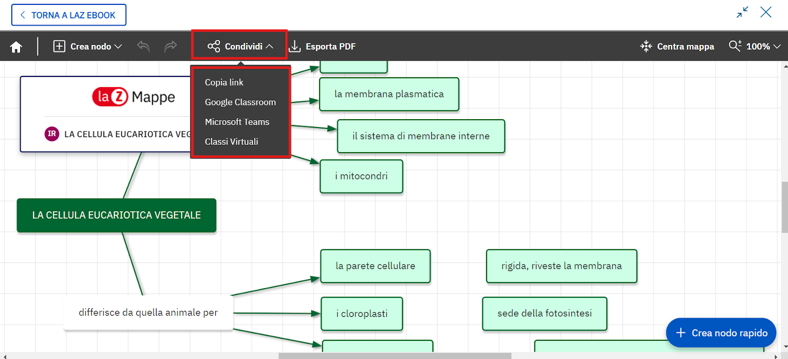 laZ Mappe consente di condividere le mappe con i tuoi studenti e le tue studentesse: potranno visualizzarla e, se desiderano, creare una copia nel loro spazio di laZ Mappe.